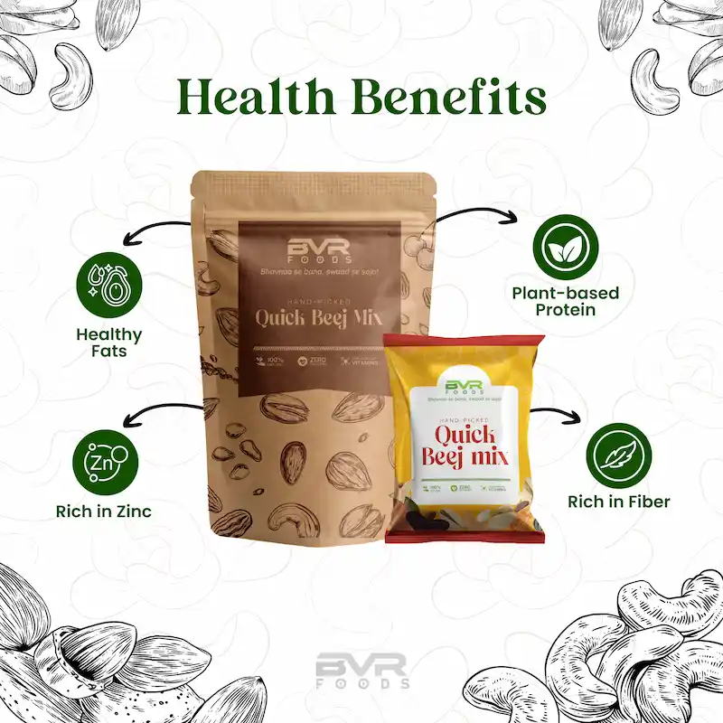 1. Quick Beej Mix transforms your diet with a healthy snack mix combo pack that brings everything required in one package. This healthy snack mix sugar free formula brings together high-quality ingredients to power your fitness with no compromise on your objectives.