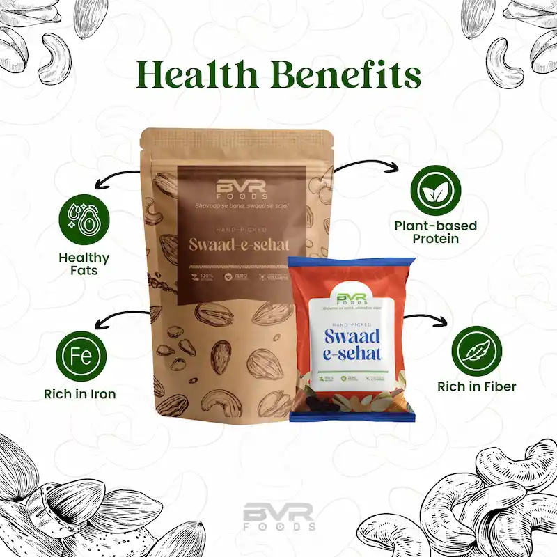 BVR Foods Swad-e-Sehat Family Mix – Roasted Dry Fruits & Seeds High in Protein, Iron & Fibre | All-Age Healthy Family Snack
