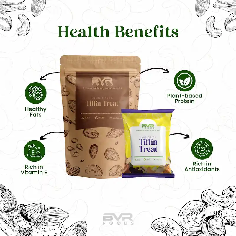 What sets Tiffin Treat apart is our dedication to quality dry fruits that provide both flavor and nutrition. Our BVR dry fruits for kids option includes top-of-the-line almonds and other dry fruit along with other well-researched ingredients. We are dedicated to offering healthy snacks that nourish growing bodies and minds.
